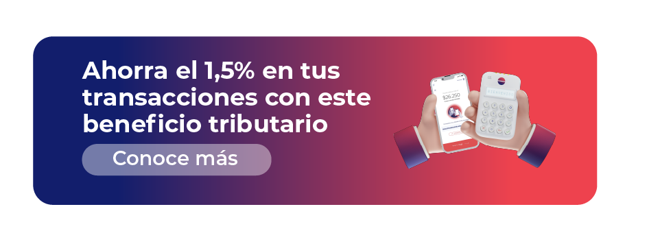“Si eres emprendedor y tienes tu negocio inscrito cómo persona natural no responsable de IVA, podrás ahorrarte el 1.5% de la retención de renta en cobros realizados con tarjetas de crédito y débito Visa, MasterCard, American Express y Codensa.”